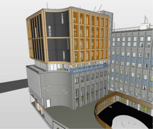 Voor de uitbreiding van het monumentale voormalige postkantoor is gekozen voor lichte houten prefab HSB‑wanden. Door de bestaande kelderconstructie is een lichtgewicht oplossing essentieel, terwijl de wanden een stevige basis vormen voor de uitbreiding met meerdere nieuwe verdiepingen.